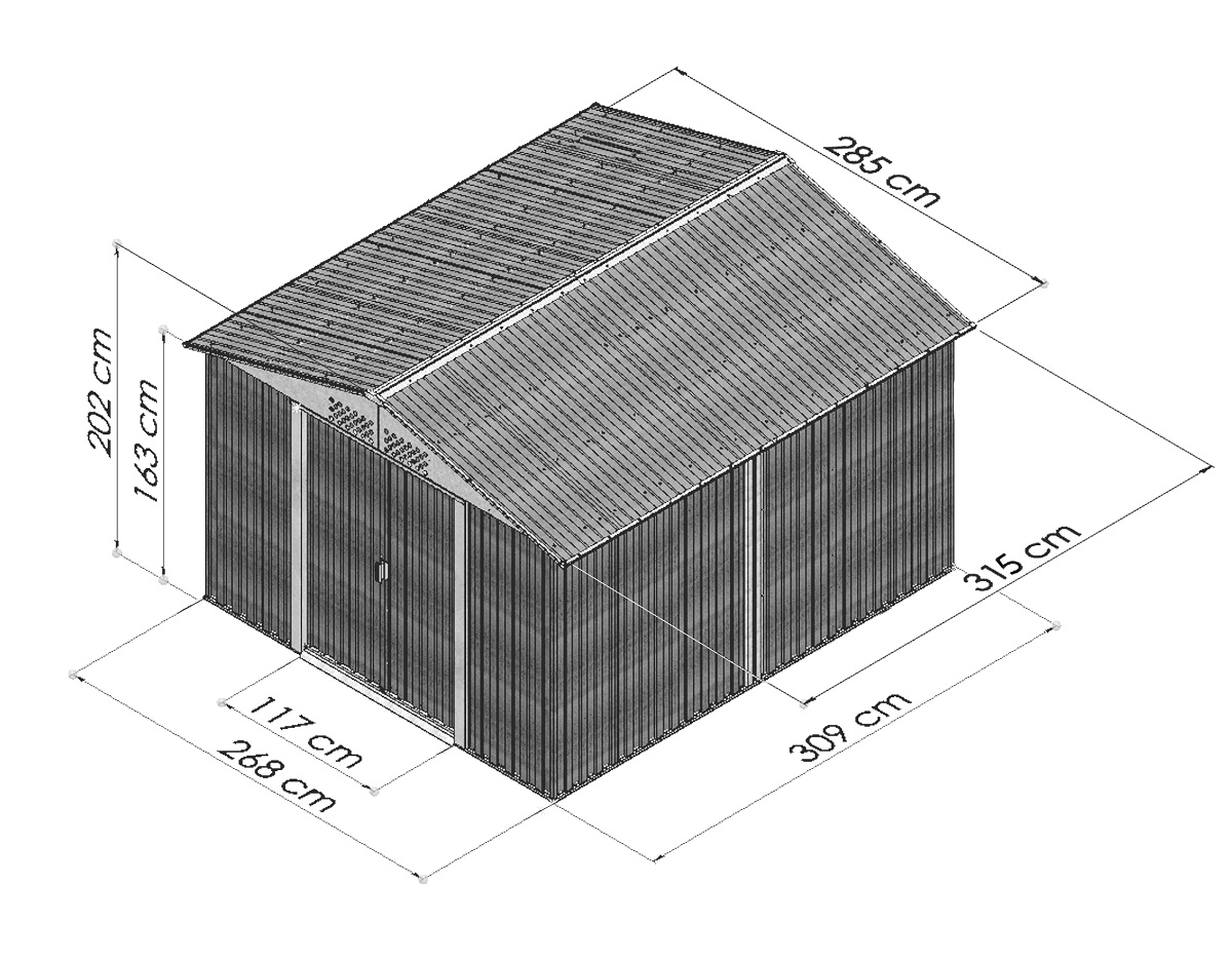 Стены и кровля толщиной 0,28 мм собираются из глубоко профилированного оцинкованного и покрашенного несколькими слоями в горячем растворе стального листа. Тем самым обеспечивается долговечность изделия. Изделие не требует в течение всего срока службы дополнительного ремонта или дополнительной окраски. Гарантия от ржавления 10 лет.
